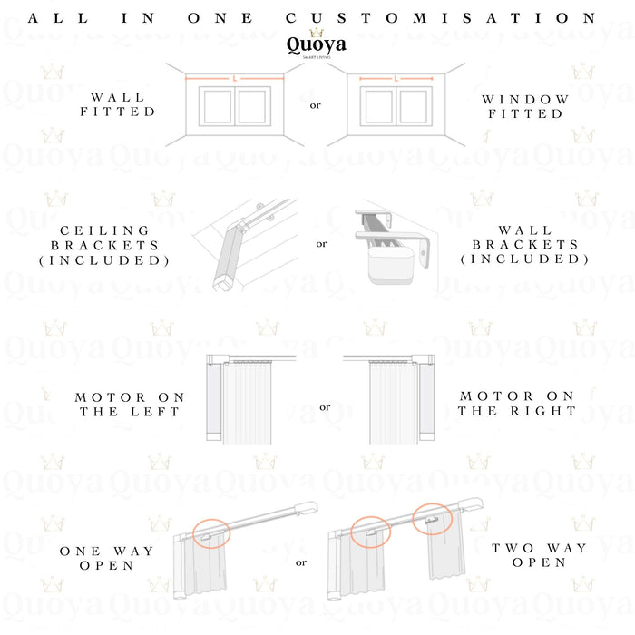 - 【ELEGANCE IN MOTION】Quoya electric curtain tracks are perfect for hard to reach or heavy curtains. Electric curtains minimise the damage that can occur with manual operation and allow you to filter natural light precisely, at the touch of a button.