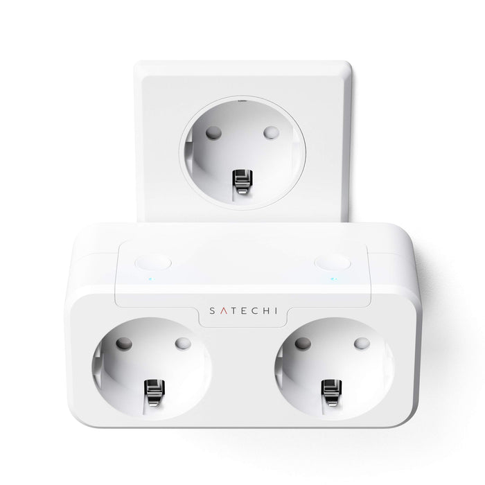 Satechi Dual Smart Outlet with Real-Time Power Monitoring - Wi-Fi Smart Plug 2.4Ghz Enabled - Works with Apple HomeKit (EU, White)