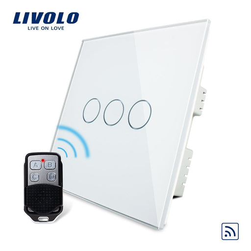 €47,12| /LIVOLO Smart Wireless Remote Control Light Switch White with LED Indicator with Tempered Glass Panel Touch Light Switch 3 Gang 1 Way, VL-C303R-61-R