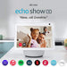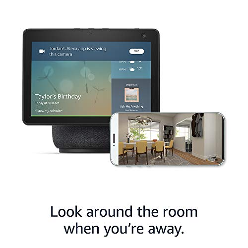 • Take a look around when you’re away—securely access the built-in camera to remotely monitor your home at any time with the Alexa app or other Echo Show devices.