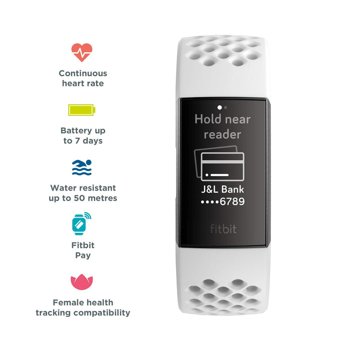 Fitbit Charge 3 NFC Special Edition Advanced Fitness Tracker with Heart Rate, Swim Tracking & 7 Day Battery - Graphite/White, One Size