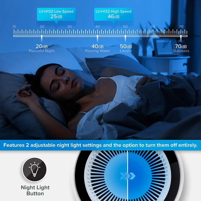 LEVOIT Air Purifier for Home Bedroom with True HEPA Filter, 3 Speeds, Night Light, Filter Change Reminder, Portable Air Filter for Dust, Smoker, Allergy, Pollen, Pets, Cooking Smell, LV-H132 White