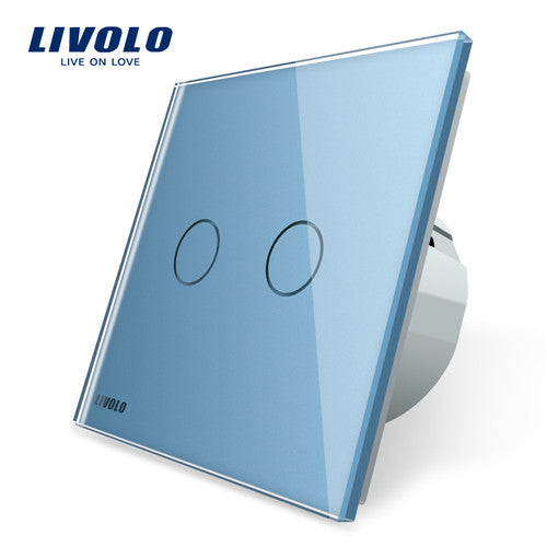 Livolo 2 Gang 1 Way Wall Light Touch Switch,Wall home switch,Crystal Glass Switch Panel, EU Standard, 220-250V,C702-1/2/3/5