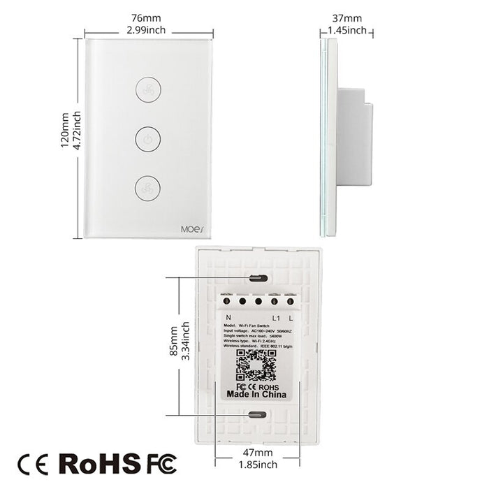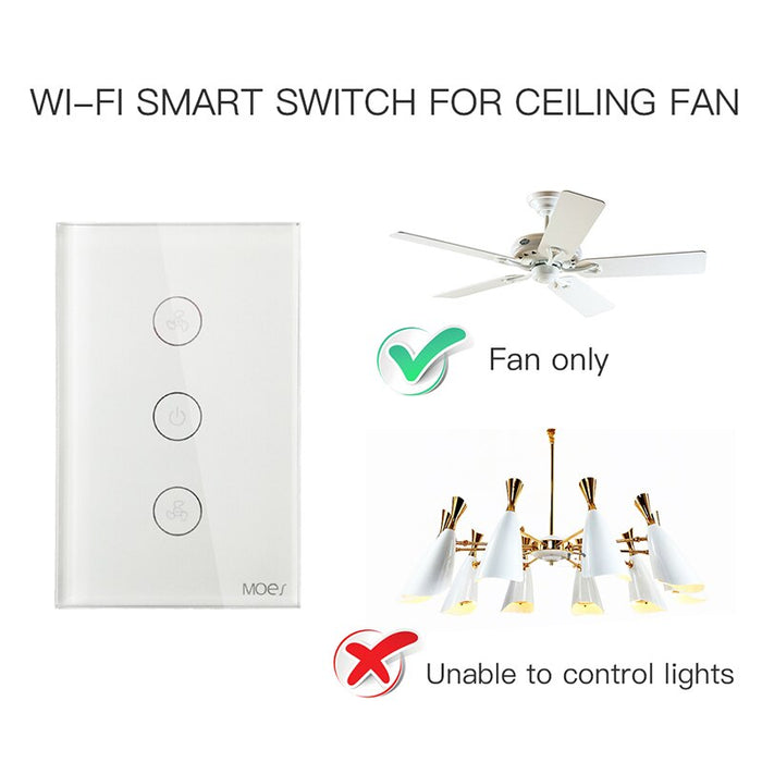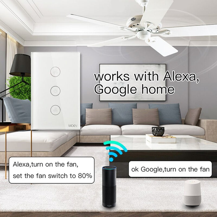 Moes US WiFi Smart Ceiling Fan Switch APP Remote Timer and Speed Control Compatible with Alexa and Google Home No Hub Required