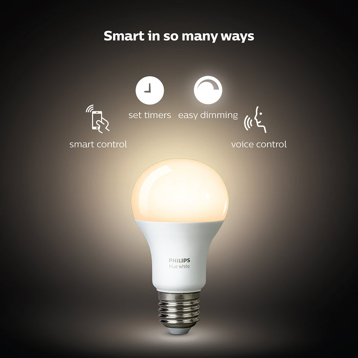 Details: Product details Philips Hue White LED Smart Light Bulb Starter Pack - E27 • Manage your lights remotely through an app or with your voice