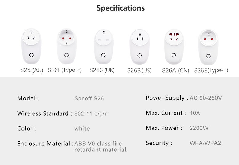 Sonoff 5Pcs Sonoff S26 WiFi Smart Socket Wireless Plug Power Socket Smart Home Switch Smart Remote Control for Alexa Google Assistant