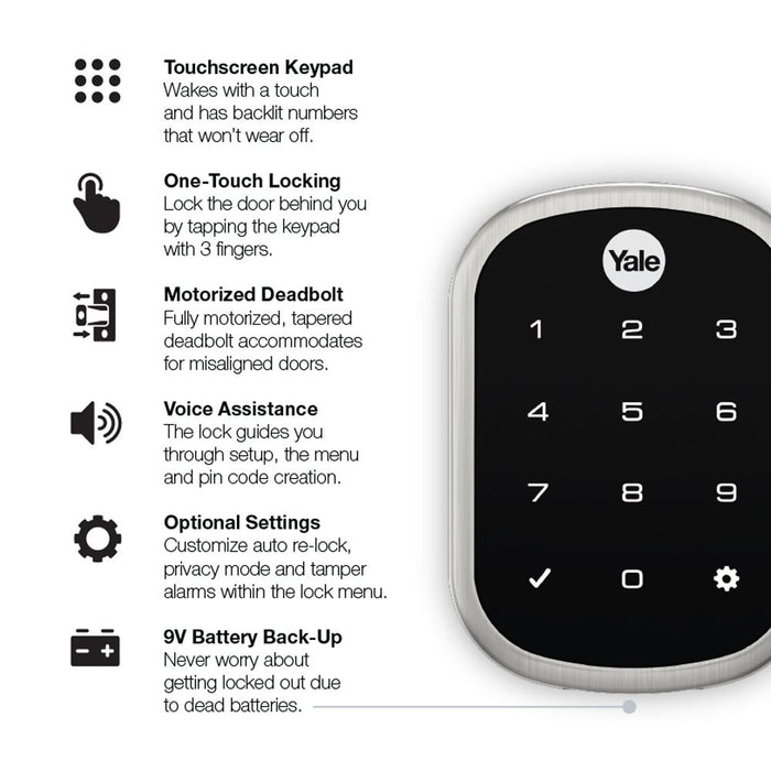 Yale Security YRD256-NR-619 Yale Assure Lock SL in Satin Nickel (Non-Connected) (YRD256) Key Free Touchscreen Deadbolt