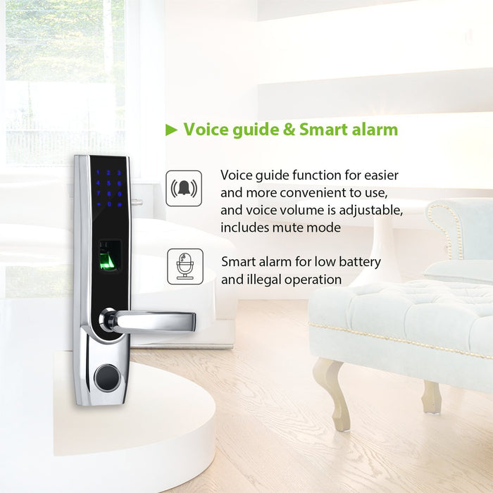 Details: Open your world with the ZKTeco Smart Lock powered by your smartphone and Bluetooth. Fumbling with your keys is now a thing of the past. You are free to use fingerprint, code, key or smartphone to unlock. A 24/7 activity log tracks who enters and exits your home. And with unique keys for each user, you'll always know who opens your door and when.ZKTeco Smart Lock works with the free ZKBioBT app to create keys, grant access, view the activity log, and more, available for Android and iOS. You will be never be locked out again!